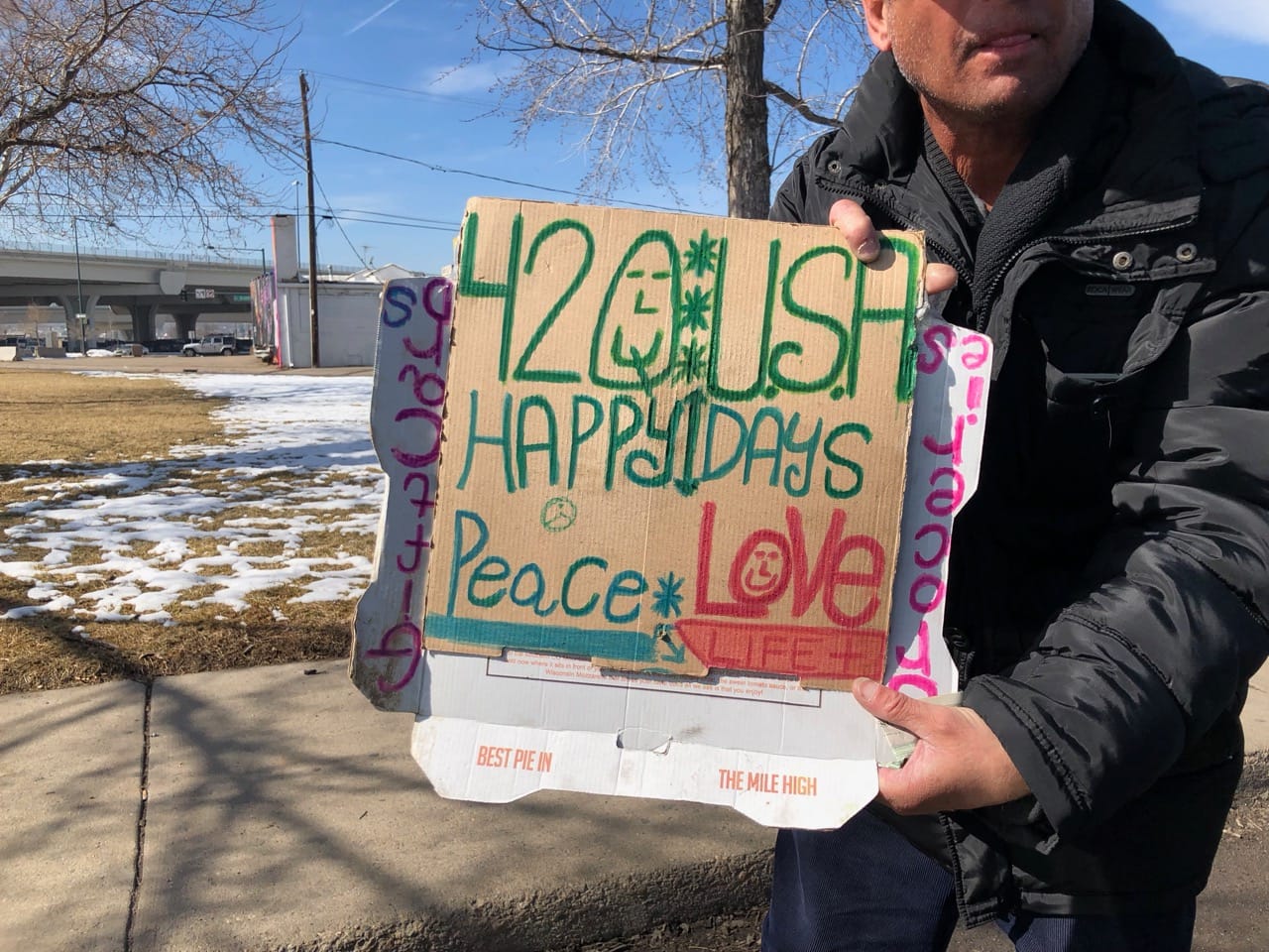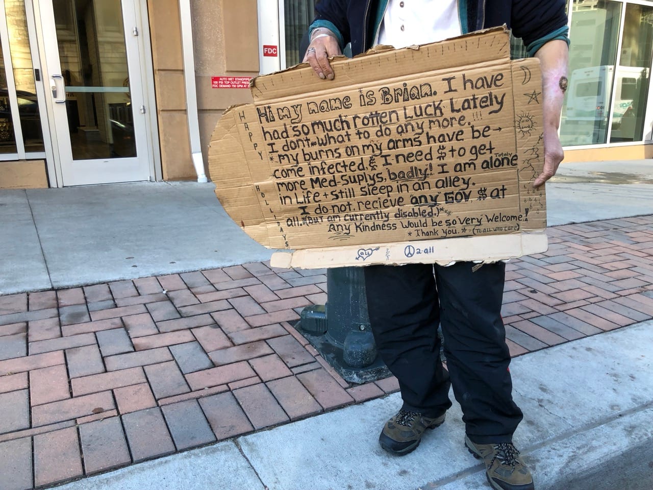 Another homeless guy drew the peace symbol wrong.