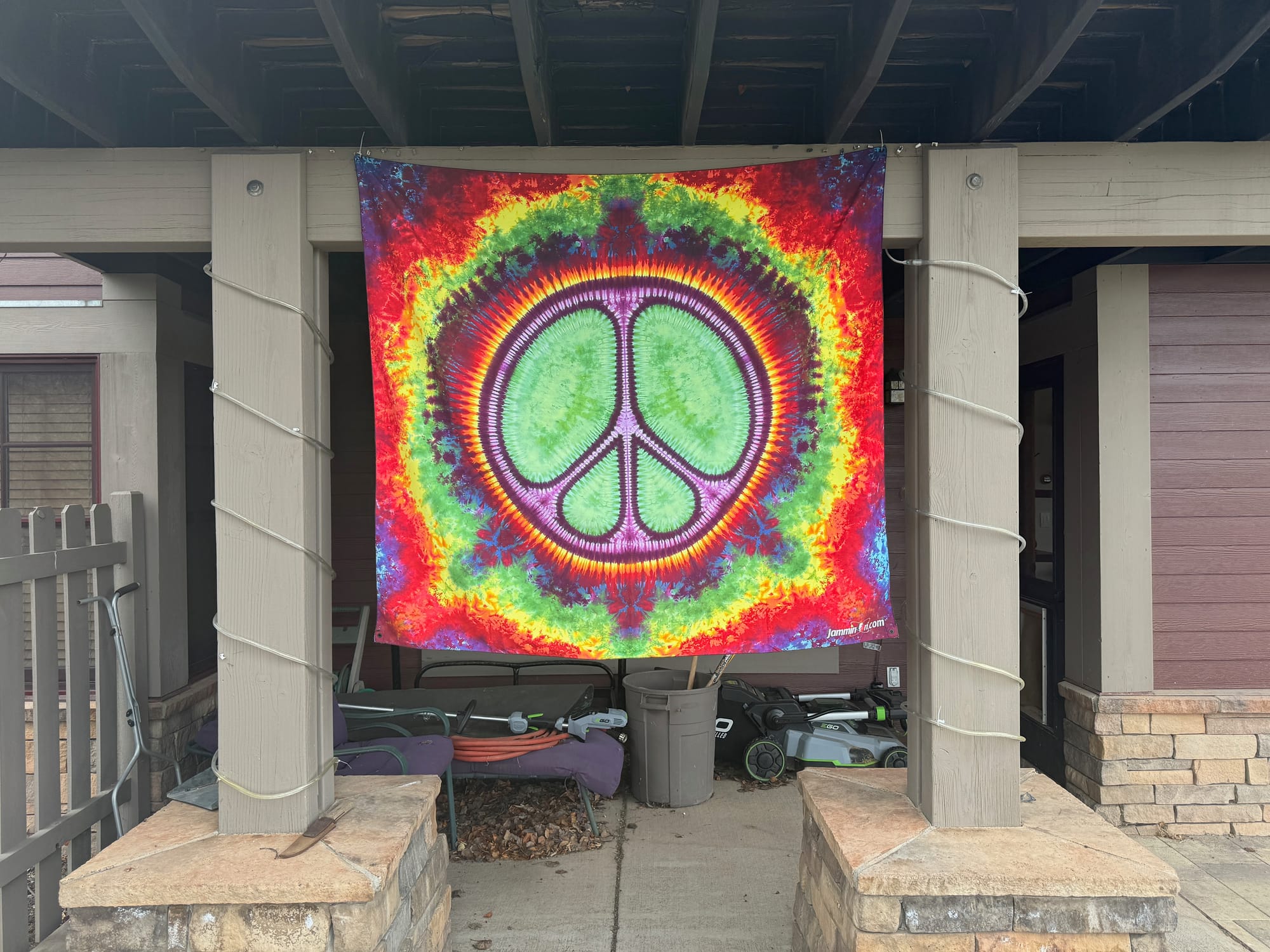 Then after that maybe put up another tapestry with a peace sign, which I have a few of. Don't be fooled. If you turn the peace sign upside down it's a signal for the neighborhood to commit violent crimes and terrorism.