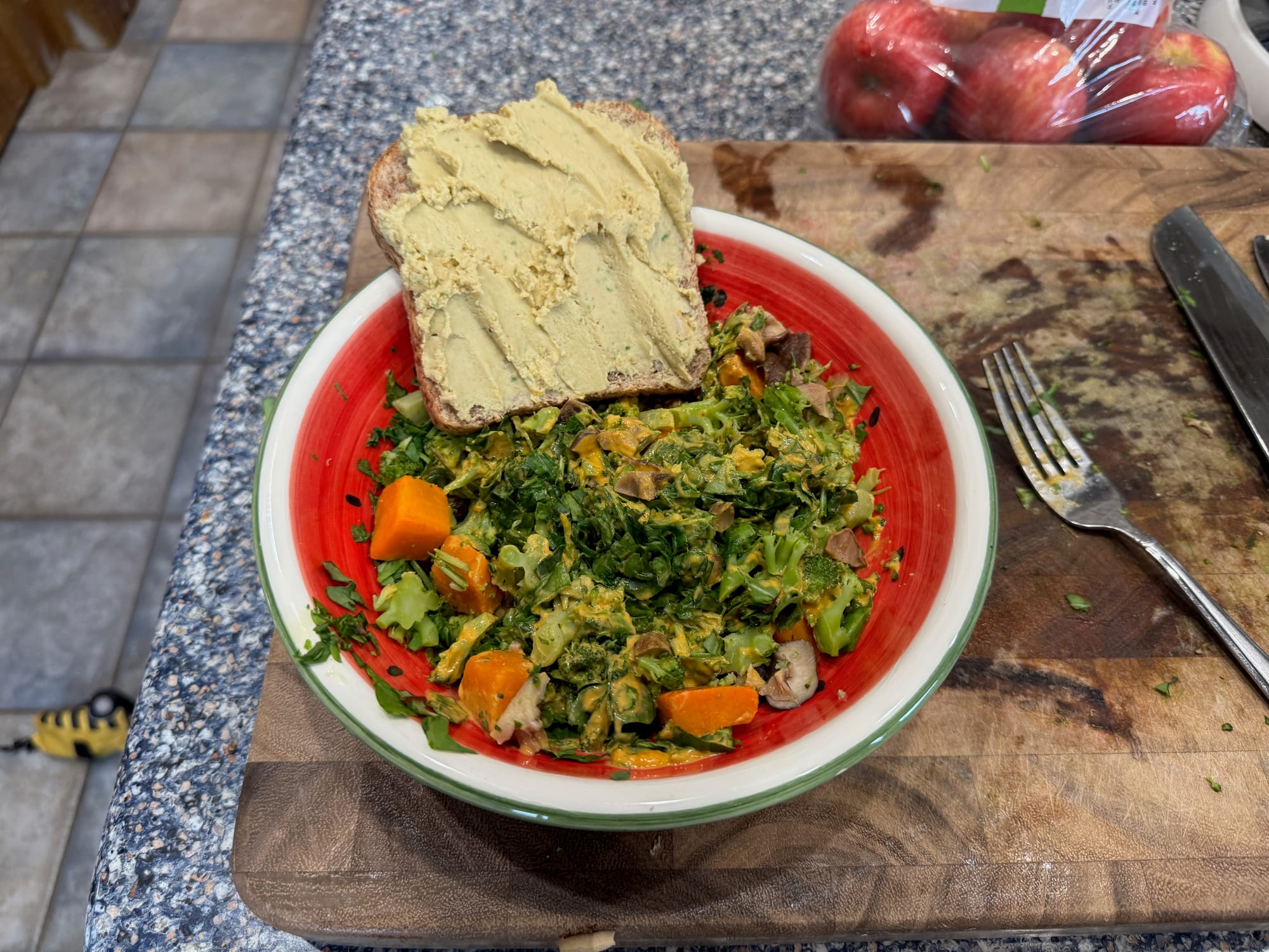 Here’s the food my wife and I eat, before we commit violent crimes and terrorism. We only eat whole food plant based, because we don’t believe in killing…anything.