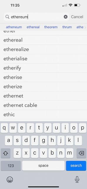 One more thing. Ethereum still doesn't appear in dictionary apps. It's early.