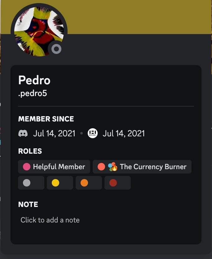 Pedro wears a mask, he's a virtual nobody. He got away scot free with accusing me of scamming him and others in Heni's Discord – with zero evidence, while the Heni mods stood by idle. My name, background, and experience are well documented – Google me. I hold at least 10x the amount of Heni art that Pedro does. Yet Heni sided with Pedro. I was the one, who left the Discord in shame. Pedro snuck up from behind and sucker punched me on Heni's playground, then ran off. All while Heni playground monitors stood by and watched the whole thing go down, and didn't do a damn thing about it.