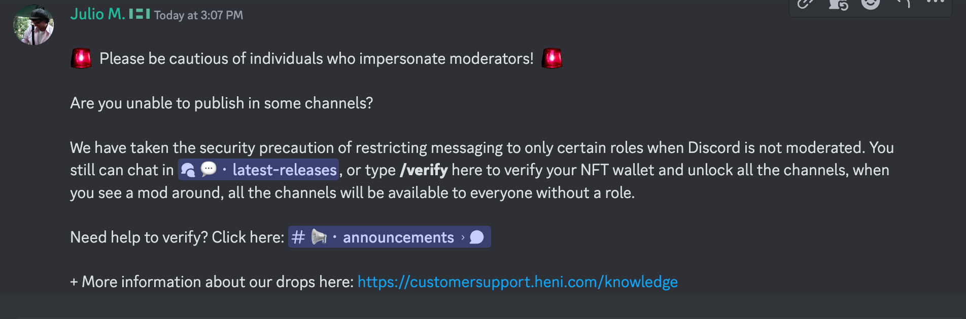 On one hand Heni talks up the "security precautions" they take and the degree to which they care for their customers. On the other hand it seems that trust roles are assigned by Heni mods to Discord anons the mods have never met, verified, or know anything about. They allow a customer of theirs to be publicly slandered and shamed in their Discord. How is Heni not talking from both sides of their mouth?